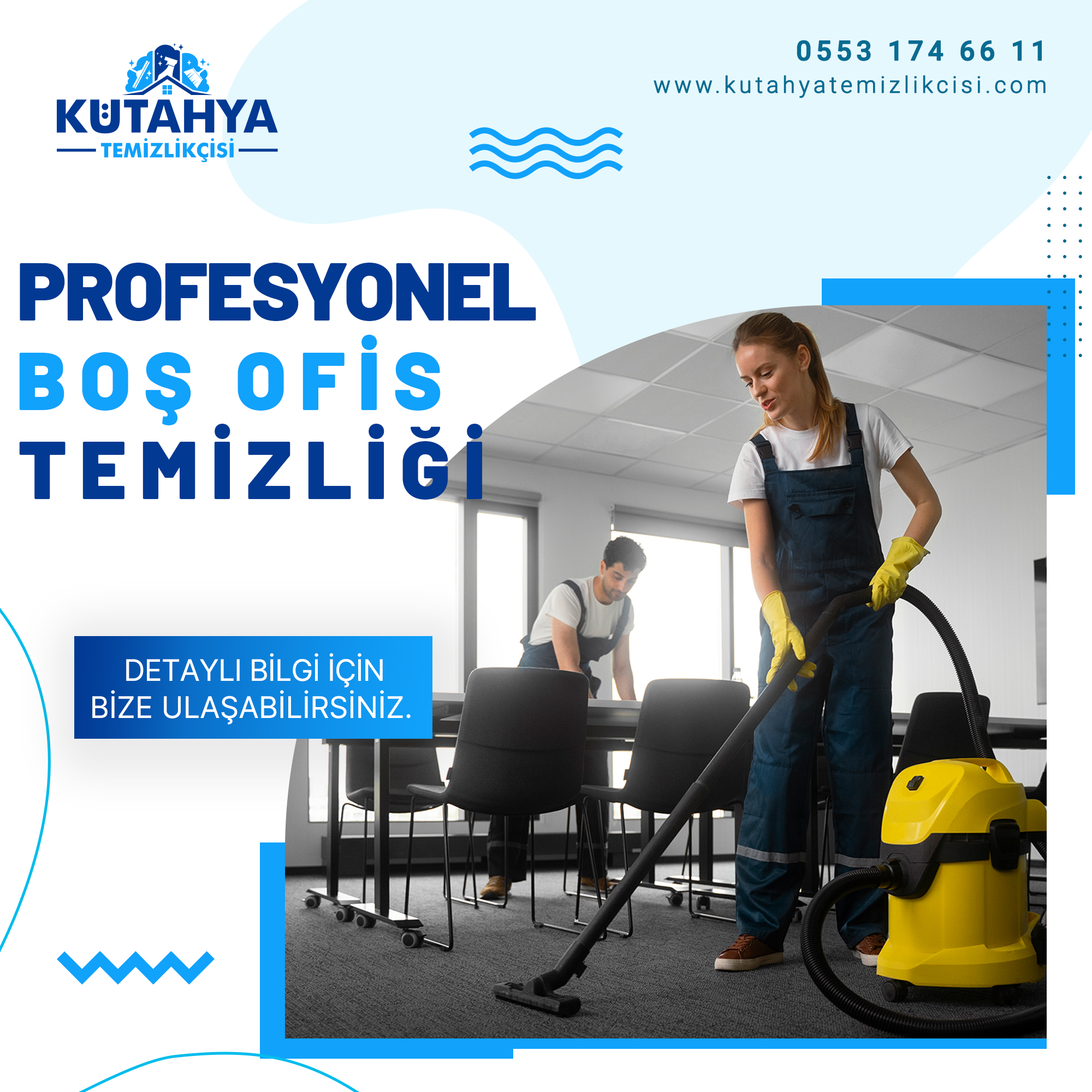 Kütahya Temizlikçisi olarak her müşterimizin ihtiyaçlarına özel çözümler sunuyoruz. İster günlük ister periyodik temizlik hizmetleri olsun zamanında, titizlikle ve güler yüzle hizmet vermeyi taahhüt ediyoruz. Çünkü biz yalnızca temizliğe değil sizin memnuniyetinize de önem veriyoruz.